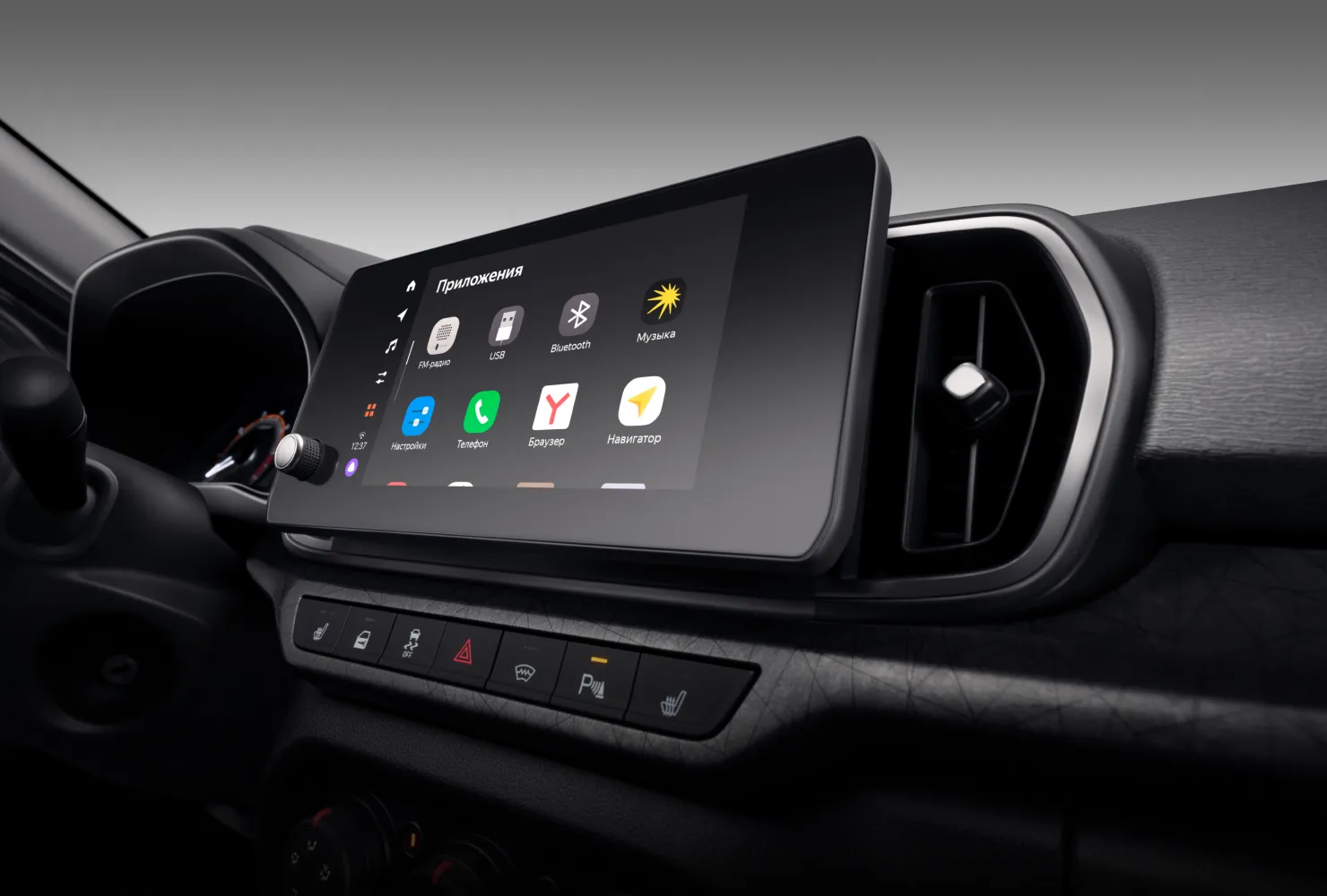 - Мультимедийная система LADA EnjoY Evo (8'' TFT-IPS ёмкостный дисплей, FM, 2USB, Bluetooth, Hands Free со сдвоенным микрофоном и функцией шумоподавления, интегрированная платформа Яндекс Авто с виртуальным ассистентом Алиса с функциями голосового управления ММС и Яндекс Навигатором), 4 динамика